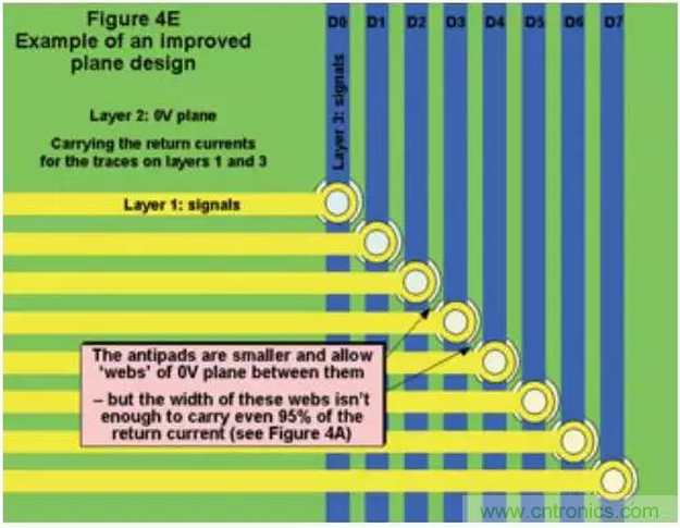14、關(guān)鍵信號(hào)線走線不要跨分區(qū)走線,如一定要跨分區(qū)走線,則在走線附近采用橋接方式,使信號(hào)形成完整回路。