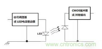 光電隔離 (或稱光隔離),是三種技術(shù)中使用最早的,并且易于使用。如下圖, 光隔離一般是采用光耦合器(簡稱光耦) 進(jìn)行隔離,以光為媒介傳遞信號。如Toshiba的TLP291光耦透過發(fā)光二極管(LED)和光探測器,把信號轉(zhuǎn)換成以電 - 光 - 電形式傳遞,產(chǎn)生隔離作用。
