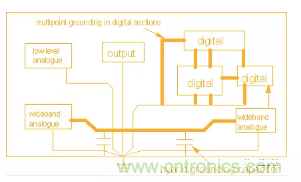 d、接地:同類電路單獨(dú)分布地,在單板上單點(diǎn)相連