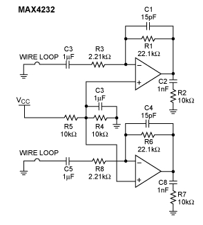 - MAX4232雙運(yùn)放的RF噪聲抑制能力測試電路