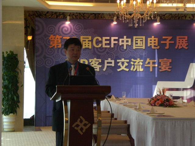 為答謝廣大電子廠商對中國電子展的長期支持,增進(jìn)廠商了解和互信,中電會展于11月13日中午在永達(dá)大廈舉行交流午宴,邀請了包括美國福祿克、固緯電子、米尼帕電子、深圳帝光、武漢力源、威世、Analog Devices,中科泛華在內(nèi)上百家企業(yè)的中高層領(lǐng)導(dǎo),并邀請了高質(zhì)量的買家客戶前來參加,其中包括富士康科技、日立顯示、LG中國采購中心等;深圳市中電網(wǎng)絡(luò)技術(shù)有限公司CEO 劉杰博士也受邀參加并發(fā)表演講,同來賓分享了對電子行業(yè)的未來趨勢發(fā)展的認(rèn)識和看法。