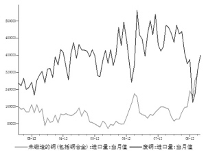 對于今年進口量的預測,分析人士大都保持比較謹慎的態(tài)度。“今年我國精煉銅的進口增加幅度可能保持在10%左右。”某業(yè)內人士表示,銅的需求是跟著GDP走的,一般需求會略高于GDP增幅。