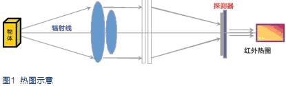 熱像儀由兩個(gè)基本部分組成:光學(xué)器件和探測(cè)器。光學(xué)器件將物體發(fā)出的紅外輻射聚集到探測(cè)器上,探測(cè)器把入射的輻射轉(zhuǎn)換成電信號(hào),進(jìn)而被處理成可見圖像,即熱圖(見圖1)。