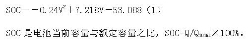 充電時(shí)電池的荷電狀態(tài)SOC(stateofcharge)可由下面的經(jīng)驗(yàn)公式來得出,其中V是電池的端電壓。