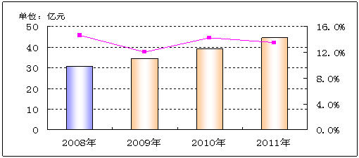 圖3:2009-2011年中國通信測(cè)試市場(chǎng)規(guī)模預(yù)測(cè)
