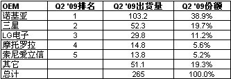 下圖所示為iSuppli公司對(duì)于第二季度五大手機(jī)OEM廠商出貨量排名的初步估計(jì)。