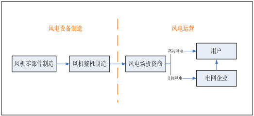 風(fēng)力發(fā)電產(chǎn)業(yè)鏈總體上分為風(fēng)電設(shè)備制造和風(fēng)電運(yùn)營(yíng)兩個(gè)環(huán)節(jié),其中風(fēng)電設(shè)備制造又可細(xì)分為風(fēng)機(jī)零部件制造和風(fēng)機(jī)整機(jī)制造,風(fēng)電運(yùn)營(yíng)從風(fēng)電場(chǎng)投資開始,按照運(yùn)營(yíng)模式的不同分為并網(wǎng)和離網(wǎng)兩種,并網(wǎng)風(fēng)力發(fā)電以運(yùn)營(yíng)商為主體構(gòu)建整個(gè)體系,離網(wǎng)風(fēng)力發(fā)電以銷售商為主體構(gòu)建整個(gè)體系,風(fēng)力發(fā)電產(chǎn)業(yè)鏈如下圖所示??傮w上風(fēng)機(jī)零部件及整機(jī)制造處于初創(chuàng)期向成長(zhǎng)期的過(guò)渡階段,風(fēng)電運(yùn)營(yíng)處于成長(zhǎng)期。