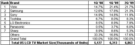 雖然三星奮起直追,但Vizio仍然連續(xù)第二個季度成為美國液晶電視市場霸主。