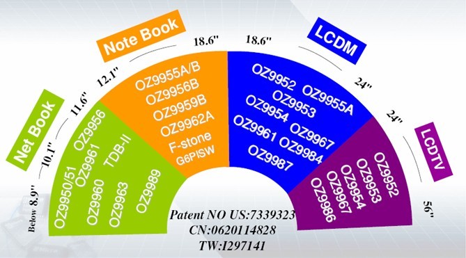 基于這樣的技術(shù)積累,目前凹凸科技已成為擁有最廣泛LCD背光驅(qū)動(dòng)IC產(chǎn)品線的廠商,如圖1所示,從上網(wǎng)本到筆記本電腦再到LCD顯示器模塊、LCD TV,尺寸從8.9寸橫跨到56寸,凹凸科技能提供滿足各類應(yīng)用需的相應(yīng)LED驅(qū)動(dòng)器解決方案(具備不同的效率等級(jí)、PWM接口、不同通道數(shù)),包括3x9、4x7、4x8、6x10、8x8、8x9等不同配置。多種技術(shù)特性如集成高速PWM功能、采用快速切換的開關(guān)模式、突波模式與相移技術(shù),及其專有的區(qū)域照明等技術(shù),則可幫助開發(fā)人員解決多串?dāng)?shù)LED均流、LED線性調(diào)光所產(chǎn)生的噪聲、功率耗散,以及廠商對(duì)于保護(hù)規(guī)格要求不一等挑戰(zhàn)。