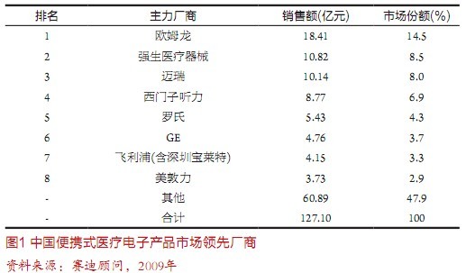 據(jù)賽迪顧問預測,未來三年,中國便攜醫(yī)療電子市場年復合增長率將超過30%,其市場規(guī)模從2006年的80億元迅速擴大到2011的280億元。