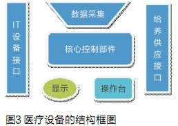 前面談了許多關(guān)于國內(nèi)嵌入式企業(yè)在發(fā)展醫(yī)療電子產(chǎn)品上的優(yōu)勢,但是,我們必須清醒地看到醫(yī)療電子產(chǎn)品(或者稱為有源的醫(yī)療設(shè)備)設(shè)計的特殊性。一般來講,醫(yī)療設(shè)備由下面幾個部分組成:電子控制部分、顯示和操作臺、給養(yǎng)供應(yīng)和數(shù)據(jù)采集、以及其他設(shè)備接口(包括IT等),如圖3。每個部分都可能有獨立的MCU或者ASIC/FPGA,甚至是高性能的嵌入式計算機組成的多處理器系統(tǒng)。軟件研發(fā)的費用在現(xiàn)代醫(yī)療設(shè)備研發(fā)費用中所占的比重已經(jīng)超過50%,未來還會增加。醫(yī)療設(shè)備的特殊性體現(xiàn)在下面幾個方面:
