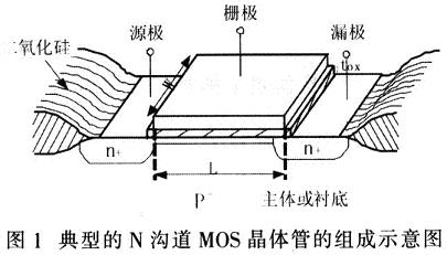 下面以N溝道MOS(metal-oxidesemiconductor)晶體管為例說明等效電路與參數(shù)之間的關(guān)系。典型的N溝道MOS晶體管組成示意圖如圖1所示。