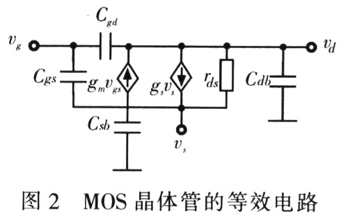 圖2中,gsVs表示第2個(gè)壓控電流源,模擬漏極電流id上的體效應(yīng)。當(dāng)源極與地相連時(shí),或其電壓不變化時(shí),此電流源可忽略。當(dāng)體效應(yīng)不能忽略時(shí),則有: