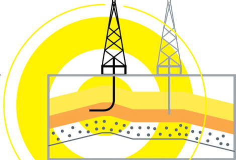 在深達大約3000多米的巖層之下,蘊藏著數萬億立方英尺的天然氣,但普通的鉆井根本無法鉆取。解決辦法是沿著巖層進行水平鉆探,即首先鉆出垂直鉆井,到 達天然氣層后再90度大轉彎實施水平鉆探。目前這只是個技術的概念。但美國第三大天然氣生產商切薩皮克能源公司計劃到2010年底將水平鉆井數量提高到 40個。