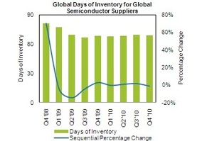 整個(gè)2010年的DOI預(yù)計(jì)穩(wěn)定在接近70天的水平。半導(dǎo)體供應(yīng)商打算在這一年中的四個(gè)季度都能保存庫(kù)存需求的平衡。