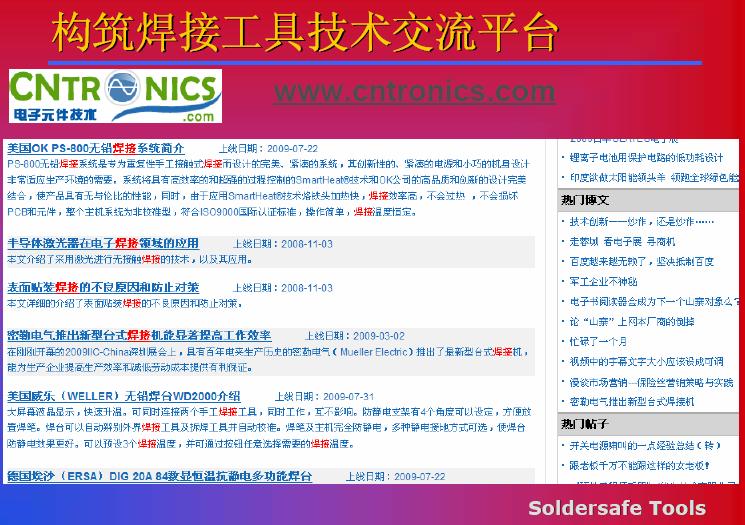 電子元件技術網http://doubowang.cn/club/muellerindex?ref=top_nav可以提供給我們一個平臺,在這個平臺里面,我們可以對于焊接設備的一些使用性能可以進行一些討論,對于新型焊接工藝本身的工藝特點進行一些分析,對于焊接材料,對于新工藝、新材料我們可以進行相應的分析,大家也可以直接,如果網絡方便的話,登錄到這個網站,我相信在這個平臺上可以一起努力,為之后的行業(yè)發(fā)展起到更多的推動作用。