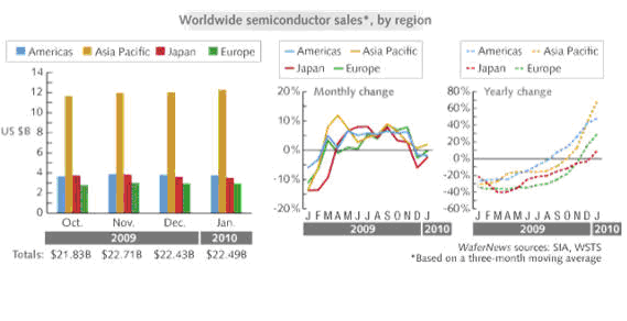 Semiconductor International 全球1月半導(dǎo)體的銷售額數(shù)據(jù)出籠,讓分析師們的眼睛一亮,紛紛提高2010年的預(yù)測。為什么如此迫不及待,值得思考。