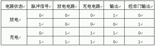 將A、B兩點(diǎn)與脈沖信號(hào)均接入與非門的輸入端,再經(jīng)一個(gè)非門輸出信號(hào)。這樣,就可構(gòu)成了一個(gè)邏輯關(guān)系。如表1。接到電池兩端,這里可以用一個(gè)開(kāi)關(guān)TWH8778來(lái)連接。