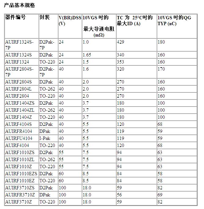 IR 亞洲區(qū)銷售副總裁潘大偉表示:“IR 這些經(jīng)過(guò)優(yōu)化的汽車專用MOSFET具有低導(dǎo)通電阻,具有寬泛的電壓和封裝。由于其表面形成了鈍化層,因而可以提高可靠性。此外,該器件的材料經(jīng)過(guò)調(diào)整、優(yōu)化后可達(dá)到堅(jiān)固、耐用的效果。”