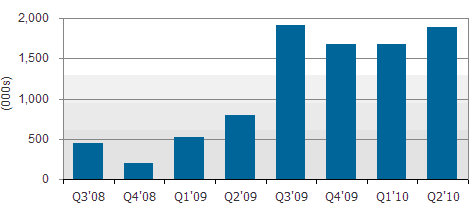 - 與2008年95萬片比較成長(zhǎng)幅度高達(dá)417%