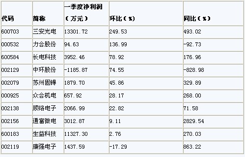 另外從電子類上市公司的已公布一季度報(bào)告的上市公司來看,三安光電、力合股份、長(zhǎng)電科技分列凈利潤(rùn)環(huán)比上漲前三位。其中三安光電和長(zhǎng)電科技分別受益于國(guó)家新興產(chǎn)業(yè)政策中的LED和手機(jī)支付。三安光電是國(guó)內(nèi)規(guī)模最大的全色系超高亮度LED芯片生產(chǎn)企業(yè),而長(zhǎng)電科技是國(guó)內(nèi)半導(dǎo)體封裝的龍頭企業(yè)。在國(guó)家不斷推出支持新興產(chǎn)業(yè)發(fā)展的政策大背景下,電子行業(yè)的景氣度還將繼續(xù)維持在高位。