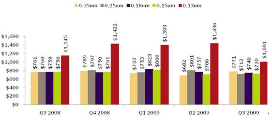- 0.18微米及0.15微米的代工價格在2009 Q2時下降