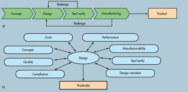 圖:(a)傳統(tǒng)PCB串行開發(fā)流程的設(shè)計周期長,信息共享有限,而成本持續(xù)上升;(b)并行開發(fā)流程允許多個開發(fā)程同步進(jìn)行,有助于確保設(shè)計成功,避免延誤、額外開銷以及返工。