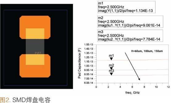雖然01005SMD電容已面市一段時間,但是因為元件價格和組裝成本較高,并沒有成為RFSiP的普遍選擇。我們對帶有焊盤分布和互連線的0201SMD電容進行了研究。