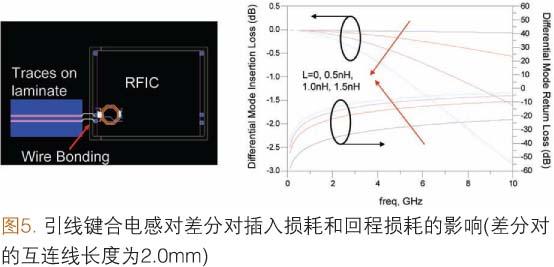 這一點也在圖5(L=0nH的情況下)中表示出來,回程損耗在頻率高達10.0GHz時保持良好,這表明100.0Ω差分對本身具有良好的匹配和低損耗特性。顯然,在高頻RFIC應(yīng)用中,引線鍵合損耗成為顯著的問題。為了克服這一阻抗失配問題,RFIC和封裝設(shè)計師應(yīng)協(xié)同工作,尋找與特定芯片阻抗相匹配的封裝形式。這樣可能出現(xiàn)非標(biāo)準(zhǔn)差分對設(shè)計,但是該設(shè)計將與引線鍵合芯片非常匹配。