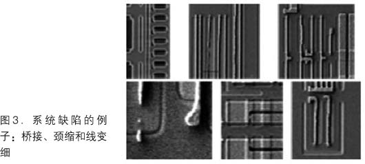 傳統(tǒng)的在線(xiàn)監(jiān)控策略主要關(guān)注像隨機(jī)微粒這樣的隨機(jī)缺陷。盡管檢測(cè)隨機(jī)微粒很重要,但更先進(jìn)的技術(shù)節(jié)點(diǎn)出現(xiàn)了很難檢測(cè)的系統(tǒng)缺陷(圖3)。即使檢測(cè)后,從大量缺陷計(jì)數(shù)中識(shí)別這些缺陷也頗具挑戰(zhàn)性,每晶圓50個(gè)缺陷的取樣率僅是105個(gè)缺陷數(shù)據(jù)的0.05%。隨著系統(tǒng)缺陷的增加,人們更多關(guān)注識(shí)別工藝開(kāi)發(fā)早期的作圖問(wèn)題以減少產(chǎn)品推出周期。