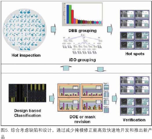 用與設(shè)計(jì)相關(guān)的檢測(cè)設(shè)置,現(xiàn)在可以產(chǎn)生更智能化的檢測(cè)菜單,注意力集中在最重要的芯片區(qū)域。這一技術(shù)已成功地在開(kāi)發(fā)和生產(chǎn)工廠(chǎng)中進(jìn)行了試驗(yàn)。引入新方法后,缺陷識(shí)別更有效,因而能通過(guò)分析實(shí)驗(yàn)結(jié)果減少工藝開(kāi)發(fā)時(shí)間(圖5)。由于能方便地監(jiān)控關(guān)鍵結(jié)構(gòu),就可以評(píng)估每一組實(shí)驗(yàn),以便選擇刻印圖形結(jié)果最好的工藝條件。