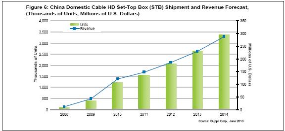 - 2010年中國高清有線機(jī)頂盒(STB)出貨量有望增長近兩倍
