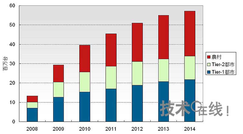 圖2:中國“一線城市”、“二線城市”及“農(nóng)村”的液晶電視需求預(yù)測