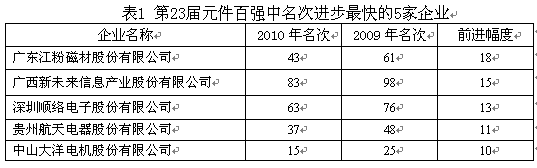 金融危機(jī)造成的企業(yè)經(jīng)營上的波動(dòng)都反饋到了第22屆、23屆元件百強(qiáng)的榜單上。在近兩屆的榜單之中,均有20多家企業(yè)的名次出現(xiàn)了10位以上(含10位)的較大波動(dòng),去年23家,今年21家。據(jù)估計(jì),如果國際國內(nèi)的經(jīng)濟(jì)形勢(shì)能保持穩(wěn)定,在未來一兩年內(nèi),元件百強(qiáng)榜單中,名次出現(xiàn)大起大落的企業(yè)數(shù)量將會(huì)減少。