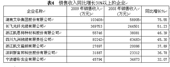 由于2009年受到金融危機(jī)的打擊,許多元件百強(qiáng)企業(yè)的生產(chǎn)經(jīng)營受到極大影響。僅有35家企業(yè)的銷售收入增長(zhǎng)超過10%,比上屆的41家還少,更遠(yuǎn)低于第21屆時(shí)的65家。僅有湖南艾華集團(tuán)股份有限公司、長(zhǎng)飛光纖光纜有限公司兩家企業(yè)的09年銷售收入同比增幅超過50%,分別增長(zhǎng)了75.55%和51.23%。而上一屆,銷售收入同比增幅超過50%的企業(yè)仍有7家。值得一提的是四川九洲線纜有限責(zé)任公司,2008年的銷售收入增長(zhǎng)110.16%,2009年的銷售收入再次增長(zhǎng)45.30%,兩年間的平均增長(zhǎng)率達(dá)到74.75%,獲得如此驚人的發(fā)展速度十分難得。