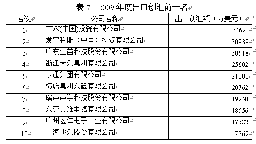本屆元件百強(qiáng)企業(yè)中,97家企業(yè)有出口業(yè)務(wù),其中53家企業(yè)的出口下滑,有15家企業(yè)的出口下降程度在30%以上。出口總額超過1000萬美元的企業(yè)達(dá)到68家,比上屆少1家;出口總額超過5000萬美元的企業(yè)有25家,也比上屆少1家。但是,有16家企業(yè)2009年的出口額超過了1億美元,比上屆多1家。