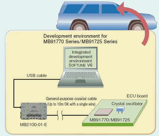 一般產(chǎn)品必須利用ICE主單元和驗(yàn)證用評(píng)估芯片來進(jìn)行系統(tǒng)檢驗(yàn),為了降低驗(yàn)證的復(fù)雜度,我們?yōu)樾乱淮鶰CU產(chǎn)品提供芯片上(on-chip)的偵錯(cuò)方式。它采用單線調(diào)試接口,可以實(shí)現(xiàn)汽車評(píng)估或一致性測(cè)試,并且能夠利用通用同軸電纜、在高達(dá)10米的范圍內(nèi)實(shí)現(xiàn)小型ICE主單元和目標(biāo)電路板之間的通信。這可以簡(jiǎn)化按照常規(guī)難以實(shí)現(xiàn)的汽車評(píng)估。