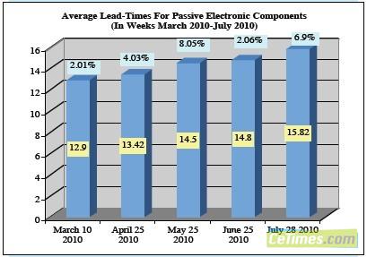 在第二季度,交貨時間被拉長,我們還密切關注了原材料的價格。7月份出現(xiàn)了一次無征兆的跳躍,交貨時間在過去30天里再一次延長了6.9%,其中鉭電容器的交貨時間增加最為明顯,而MLCC的交付時間則縮短了,因為韓國和日本差不多在同一時間開始供貨(圖1.1)