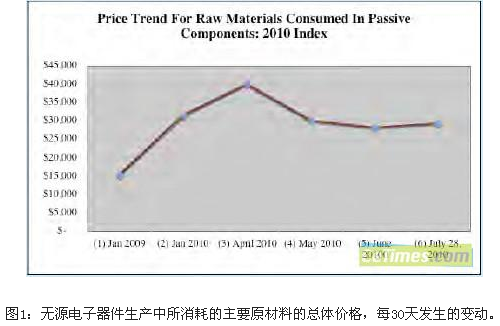 在7月份,無源電子器件在生產(chǎn)過程中所消耗原材料的帕曼指數(shù)(Paumanok index)增長(zhǎng)了4%。這標(biāo)志著,在2010年4月急劇上漲之后的原材料價(jià)格整體下降的局面已經(jīng)臨近結(jié)束(圖1)。