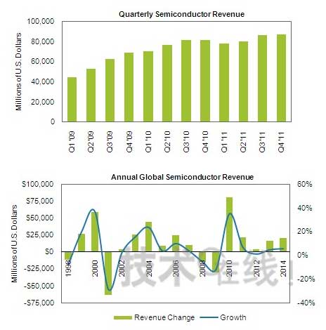 iSuppli從正面否定了對于此次快速增長所擔(dān)心的“泡沫”和“二次探底”。關(guān)于泡沫問題,有觀點(diǎn)認(rèn)為,此前曾創(chuàng)下歷史最高增長率的2000年出現(xiàn)了需求泡沫,所以此次的增長會不會也是泡沫。但是,iSuppli指出,2000年的增長是繼1999年經(jīng)濟(jì)繁榮之后的產(chǎn)物,而此次增長的背景卻是經(jīng)濟(jì)形勢從2009年以前的經(jīng)濟(jì)低迷期開始的復(fù)蘇,因此這兩種情況“在循環(huán)本質(zhì)上完全不同”。關(guān)于二次探底,iSuppli高級副總裁戴利·福特(Dale Ford)表示,“我不同意二次探底將要到來的觀點(diǎn)”。他認(rèn)為,從2010年下半年開始,2010年半導(dǎo)體市場將恢復(fù)到通常模式。也就是說,2010年第二季度將環(huán)比增加8.2%,達(dá)到峰值,第三季度將環(huán)比增加6.7%、第四季度將環(huán)比增加0.4%,出現(xiàn)減速,進(jìn)入2011年后,由于通常的季節(jié)因素,將轉(zhuǎn)為環(huán)比負(fù)增長。iSuppli預(yù)測,回到這種標(biāo)準(zhǔn)增長模式后,2011年的半導(dǎo)體市場將增長7%。