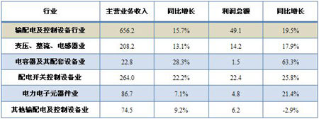 表:輸配電及控制設備行業(yè)及其子行業(yè)主營業(yè)務收入和利潤總額(單位:十億元)