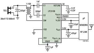 圖2在無線遠(yuǎn)程傳感器應(yīng)用中使用的LTC3108