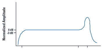 傳感器在30Hz左右會(huì)開始滾降,其頻率響應(yīng)幅度相對(duì)較為平坦,直到升至65kHz這個(gè)諧振頻率,這時(shí)平坦響應(yīng)才改變過(guò)來(lái),在此之后頻率響應(yīng)便急速下跌。這一平坦頻帶的峰峰值振幅約為32mVp-p,然后振幅會(huì)放大至4Vp-p。以下是增益:
