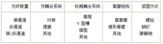 目前,大多數(shù)的光纖連接器是由三個部分組成的,即兩個配合插頭和一個耦合管。兩個插頭裝進(jìn)兩根光纖尾端;耦合管起對準(zhǔn)套管的作用。另外,耦合管多配有金屬或非金屬法蘭,以便于連接器的安裝固定。