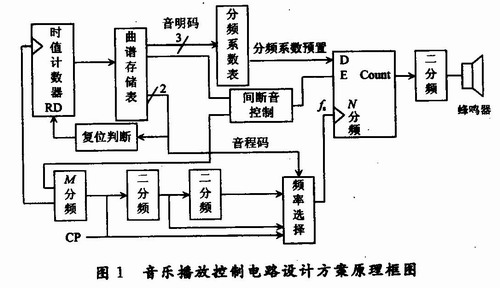 音樂播放控制電路設(shè)計方案原理框圖如圖1所示。