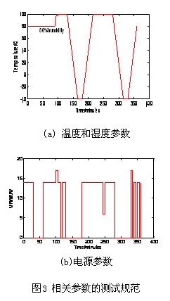 根據(jù)PCM各種工況下的極限環(huán)境,確定了溫度、濕度、電源電壓等重要參數(shù),建立了一套周期為6小時(shí)的測試規(guī)范,具體如圖3所示,并通過了利用DSPACE快速開發(fā)平臺和NI虛擬儀器平臺建立的耐久性測試實(shí)驗(yàn)平臺的檢驗(yàn)。