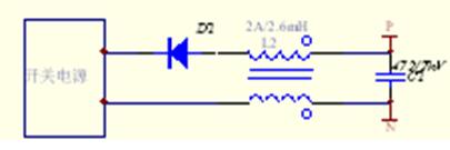 第一種方法的抗干擾設(shè)計(jì)考慮如圖7所示,圖中的高頻電容C1用來(lái)吸收高頻脈沖,二極管D2用來(lái)抑制線路寄生電感與電容C1振蕩。