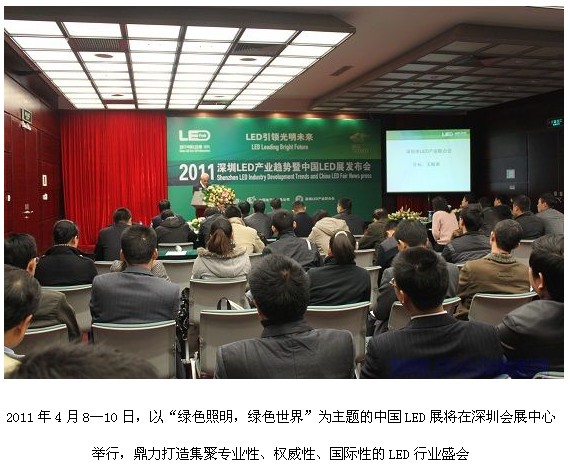 1月6日,主辦方中國(guó)電子器材總公司和深圳市LED產(chǎn)業(yè)聯(lián)合會(huì)召開新聞發(fā)布會(huì),宣布華南地區(qū)第一個(gè)LED專業(yè)展覽會(huì)正式啟動(dòng),并將每年4月定為“深圳LED宣傳月”,讓市民了解和認(rèn)知LED產(chǎn)品。
