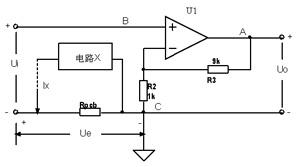 以圖1所示電路為例,U1、R3、R2組成同相放大器,設(shè)計(jì)期望該放大器能夠?qū)⑤斎胄盘?hào)Ui放大10倍,Uo是放大器的輸出電壓。由于PCB布局布線(xiàn)受到約束,Ui的“-”輸入端子跟電阻R2的C端之間有一段導(dǎo)線(xiàn)Rpcb。而PCB上可能存在“電路X”引入地回流Ix流過(guò)導(dǎo)線(xiàn)電阻Rpcb。受“電路X”地回流Ix的影響,導(dǎo)線(xiàn)Rpcb兩端會(huì)有電壓差Ue,為了確定Ue對(duì)被測(cè)信號(hào)的影響,需要測(cè)量Ue的大小。