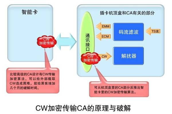 圖三中是CW加密傳輸?shù)腃A原理與破解,有的CA在CW傳輸構(gòu)成中進(jìn)行了加密,但這種加密幾乎沒有對黑客形成阻礙。